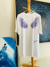天使のような存在感を纏った一枚を身に着ければ、普段のコーディネートもちょっと特別な気分になれます。全て手描きの一点物のため人気商品です。あなたの日常がより輝くことを心から応援しております。