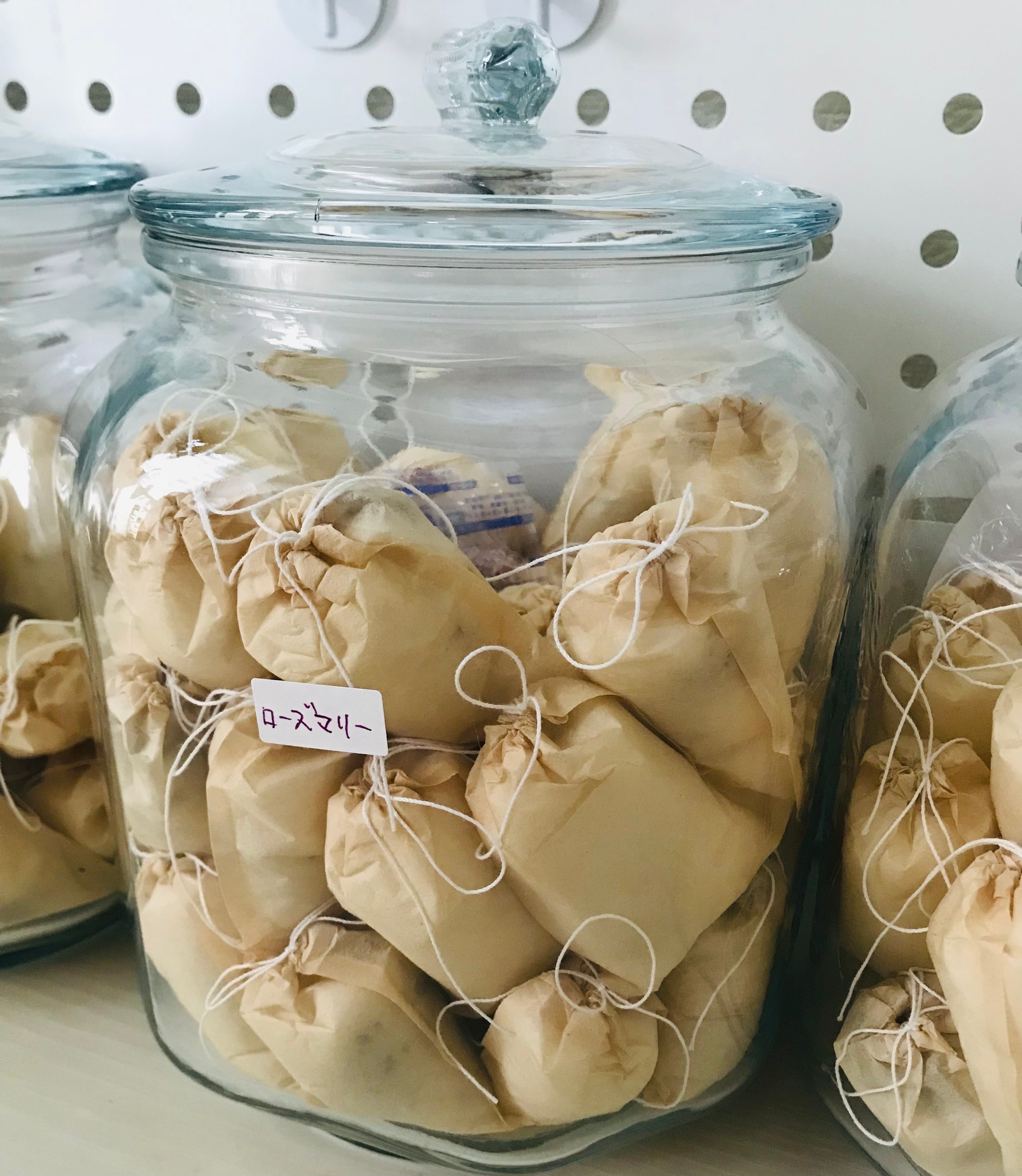 家庭菜園の自然農で私が育てたハーブ3種類を使って、エプソムソルトと合わせて作りました。