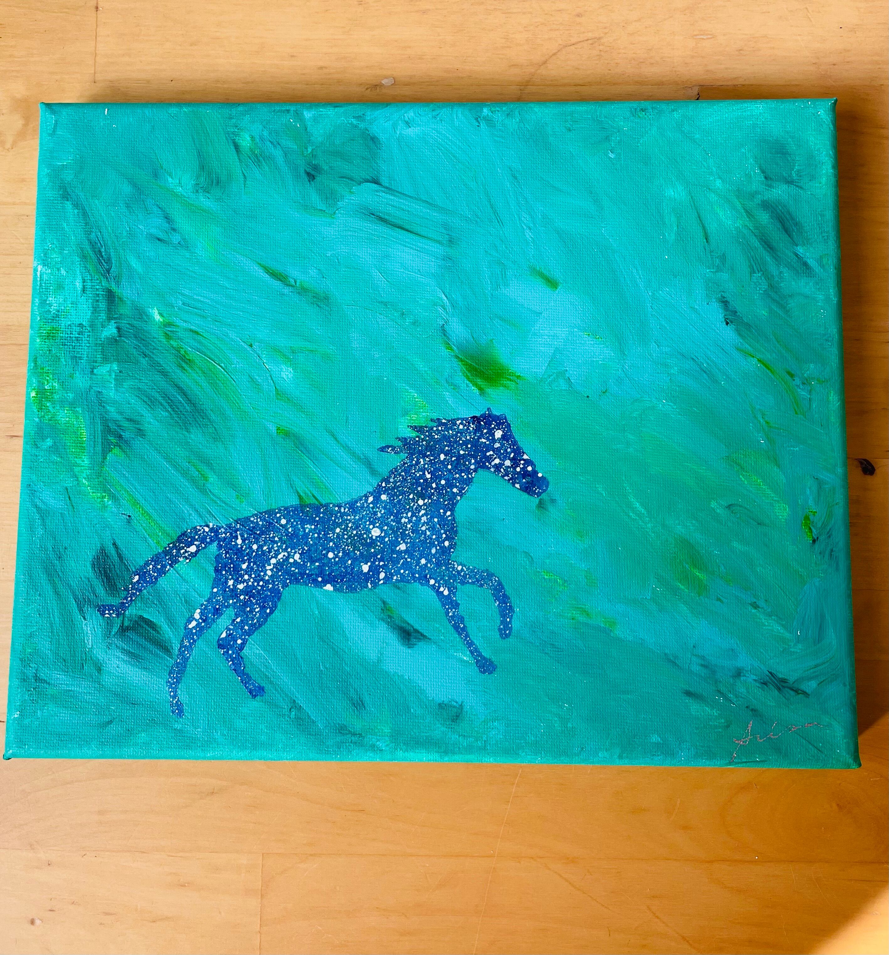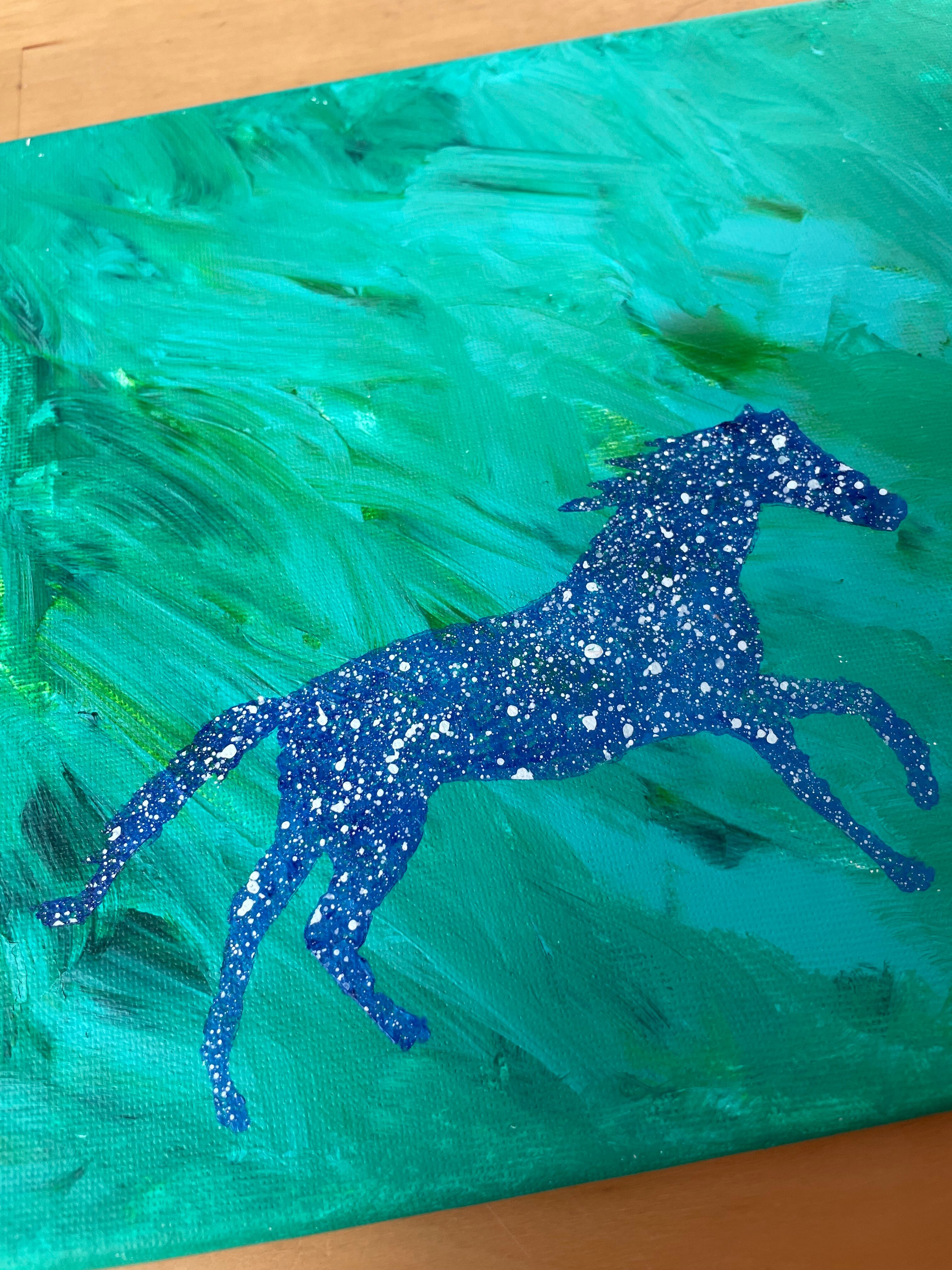 広がる草原を思わせるデザインが印象的なこの作品は、手描きの一点ものであり、特別な存在感を放っています。「自由」は、光の中で駆ける馬の姿が生き生きと描かれており、自由な心を感じさせるような美しさが特徴です。