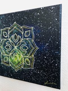 目醒めをテーマにしたこの作品は、宇宙の神秘と幾何学模様が織り交ざった特別なアートピースです。デザインは目に見えないエネルギーが流れる様子を描写し、観る者にスピリチュアルな気づきをもたらします。このアートを飾ることで、あなたの生活に新たな気づきと意識の拡張をもたらすことができるでしょう。
