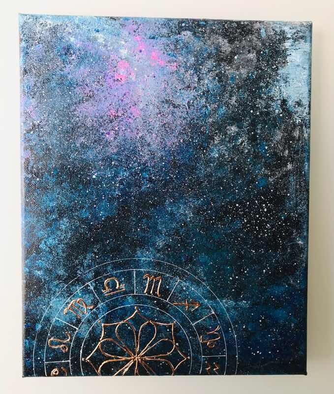 新作 天の川をモチーフにした宇宙アートの上に、6個の星座を描いた新作です